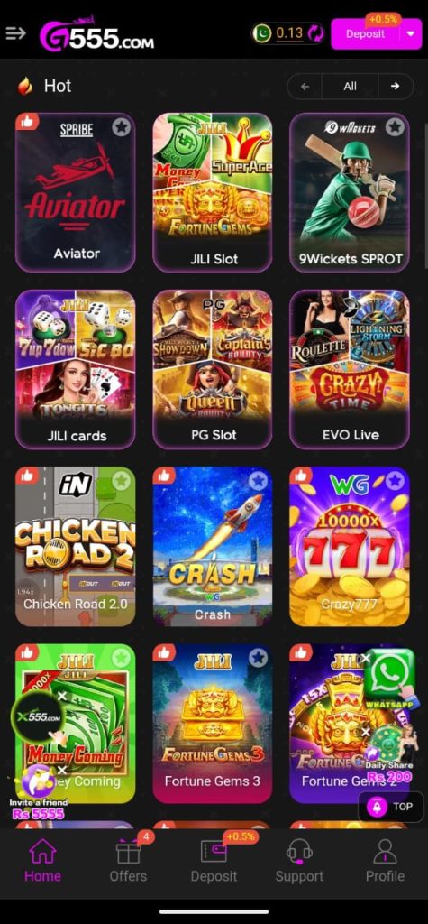 After login, you can explore several mini games on the home screen. Choose any game you understand best and start playing with small amounts. The more you win, the higher your wallet balance grows.